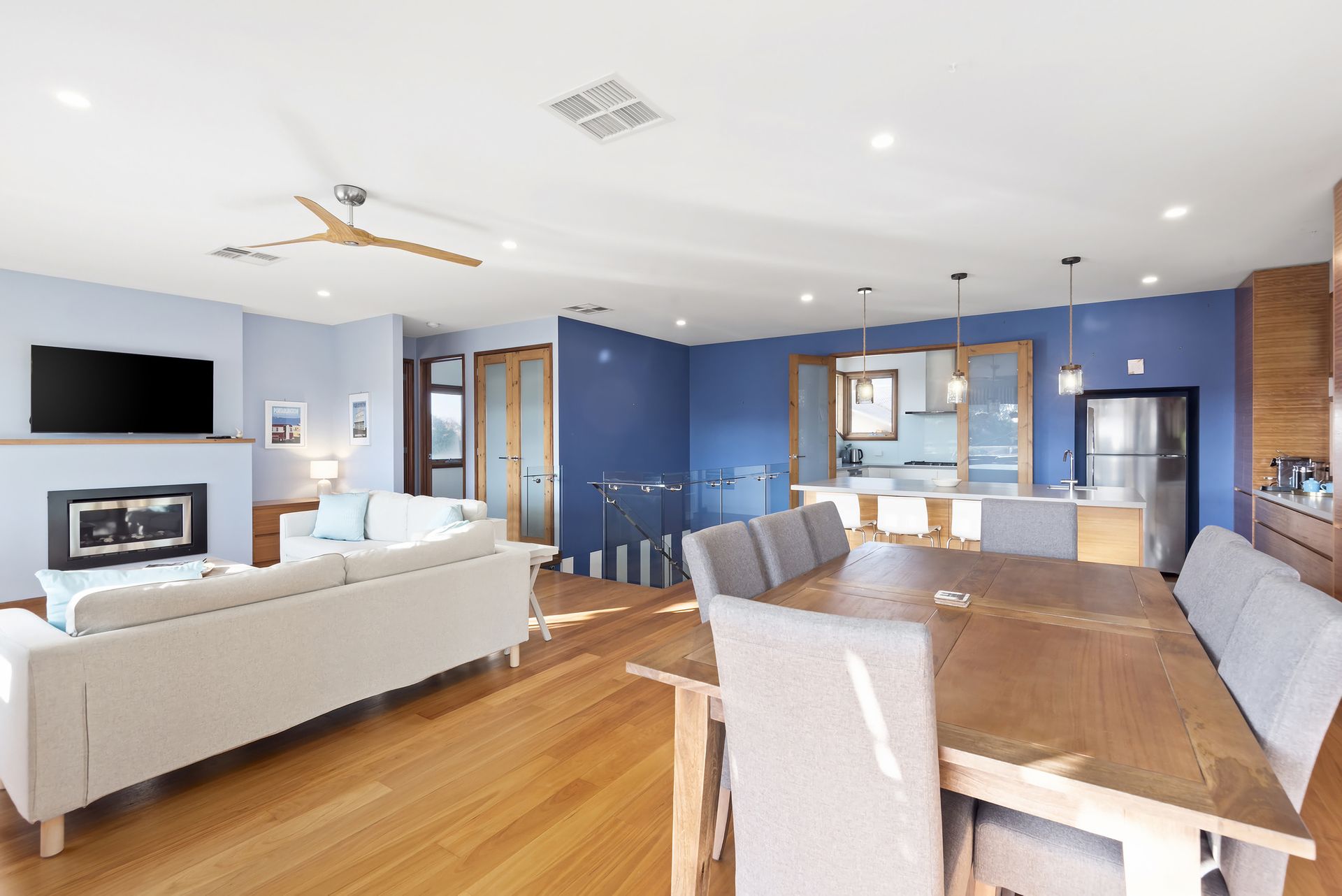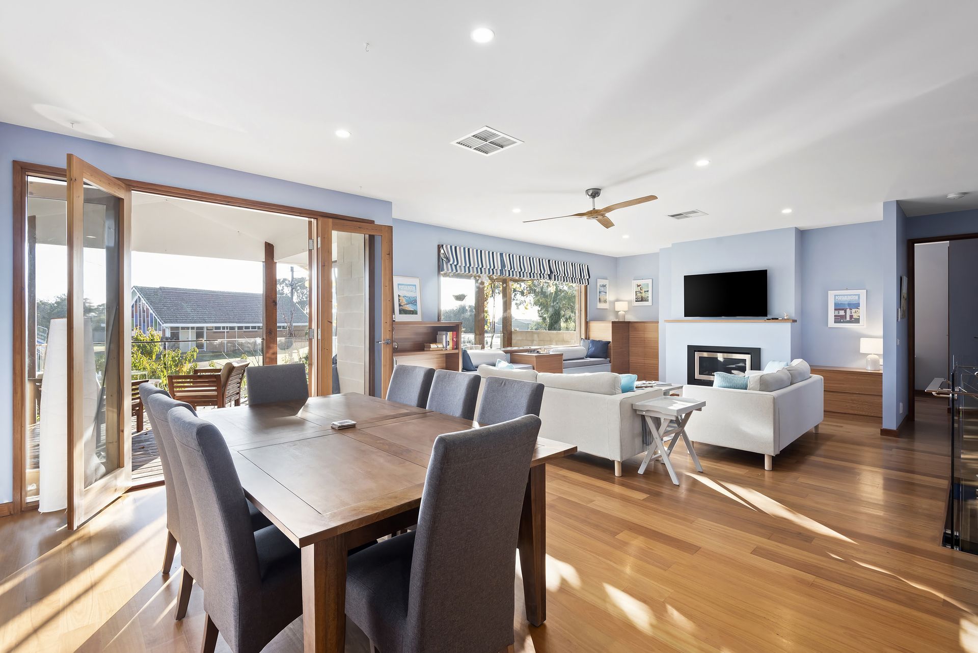 Featuring three large bedrooms and two bathrooms, this home comfortably accommodates up to six guests. The highlight of the property is the stunning open-plan living area, which seamlessly blends the kitchen, butler's pantry, and lounge room. This space flows out onto the upper deck, providing a great location for outdoor dining, reading or simply soaking up the sunshine.