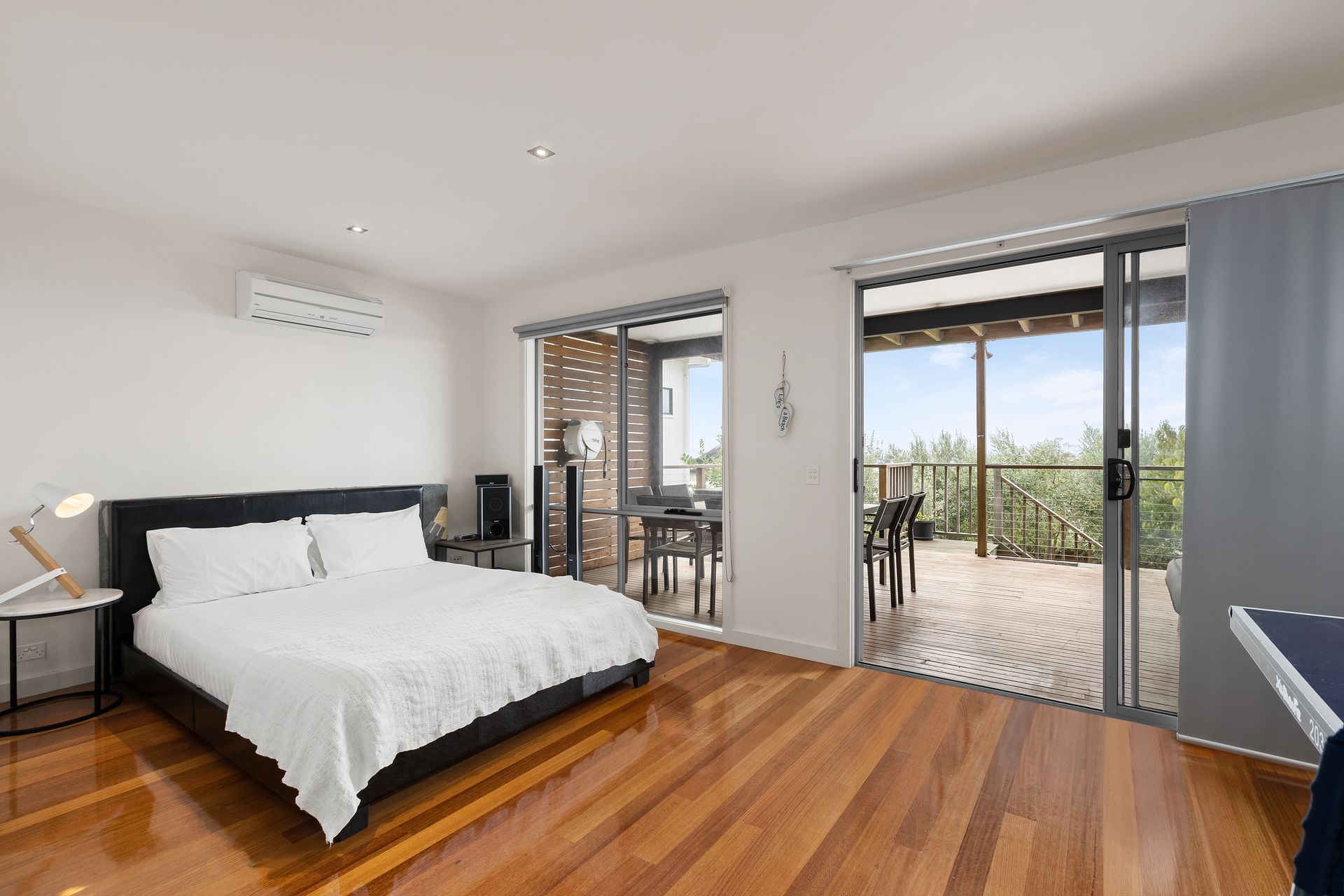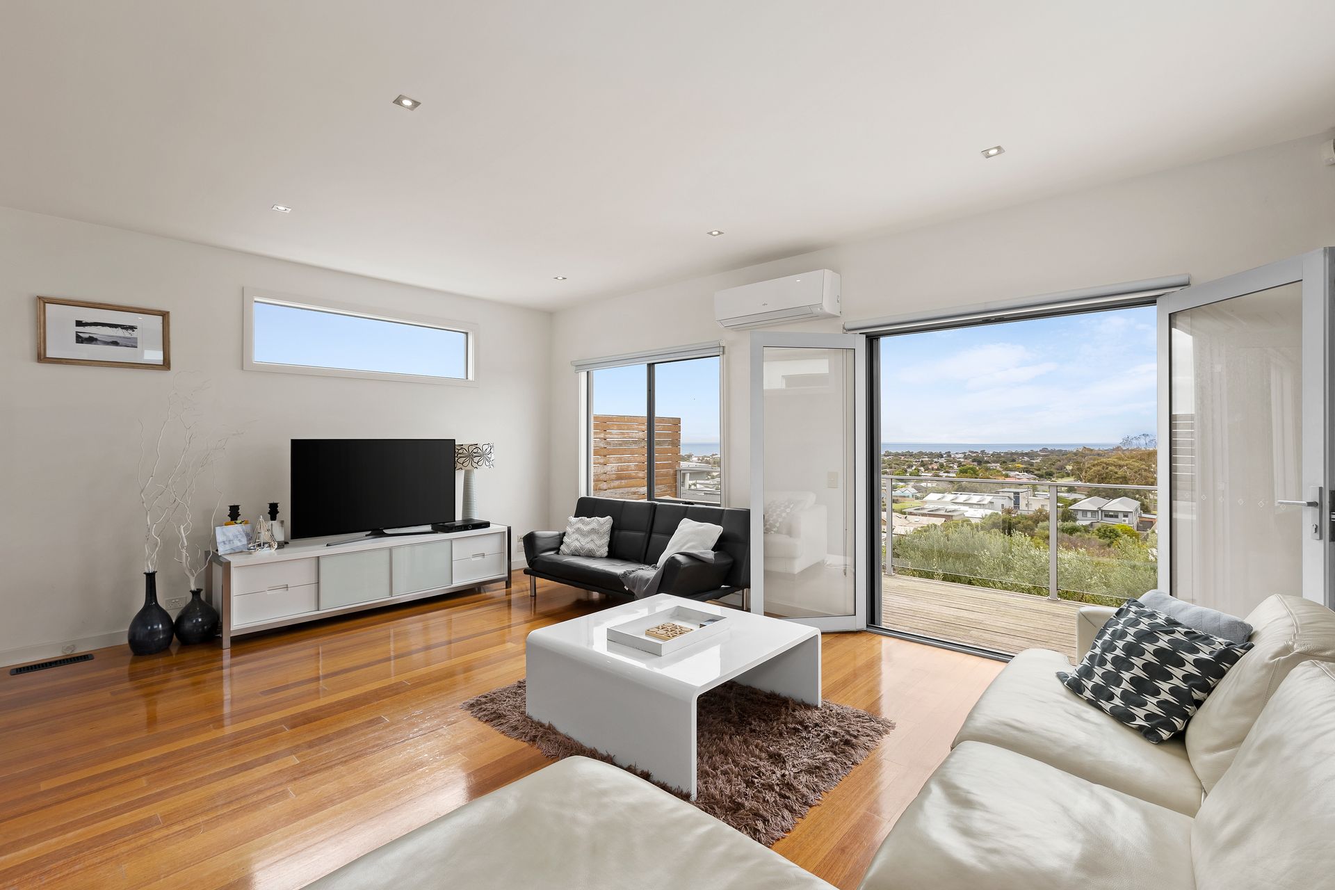 The outside undercover deck features breathtaking views of Melbourne and the bay with easy access to the backyard via the stairs.