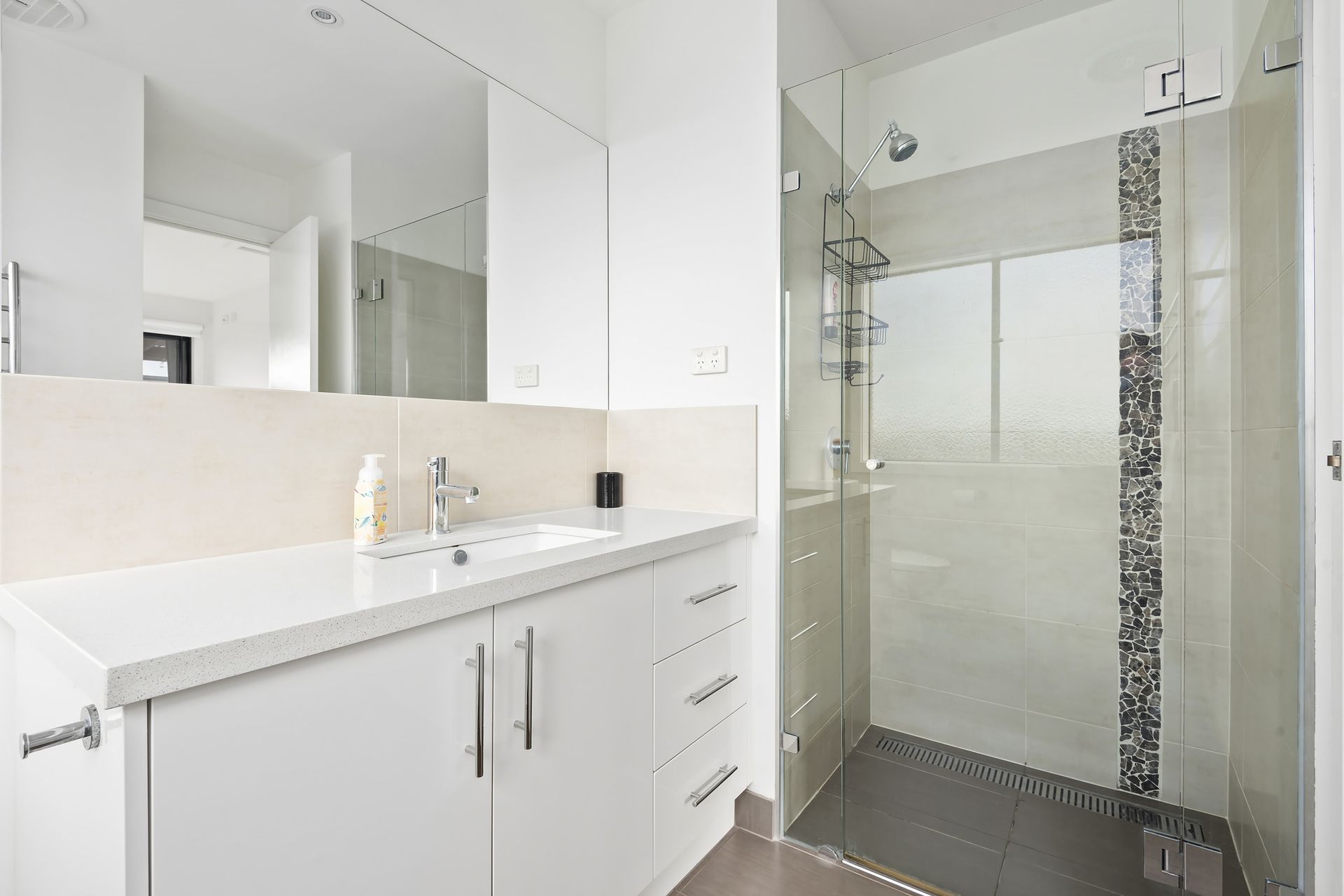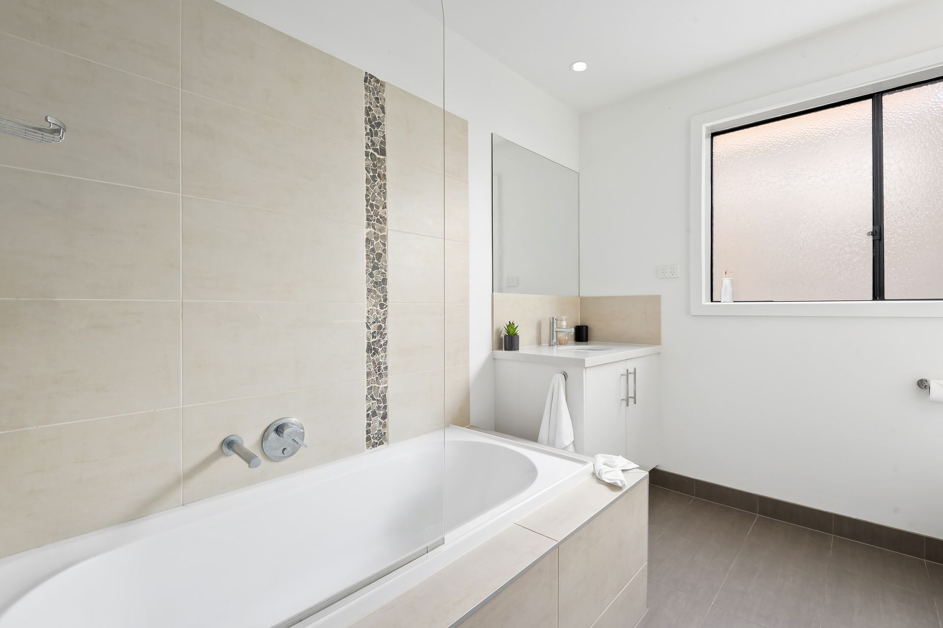 The bathrooms are modern and well appointed, with a main bathroom on level one featuring a bath, shower and toilet, and a master ensuite on level two with a bathtub, shower and toilet. There is also an additional separate toilet on level two.